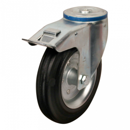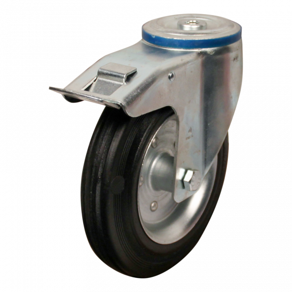 Diese Lenkrolle hat eine Gabel aus Stahl. Diese Rolle hat eine Totalfeststeller, Nachlauf. Dies kann mit Befestigingsart „Bolzenloch“ befestigt werden. Die Bauhöhe beträgt 230 millimeter. Die Felge besteht aus Stahl (Farbe Verzinkt) und die Lauffläche aus Gummi (RAL 9005 Tiefschwarz). Das Rad hat einen Durchmesser von 200 millimeter und eine Breite von 48 millimeter. Die Nabenlänge beträgt 60 millimeter mit einem Achsloch von 20 millimeter. Die Tragfähigkeit beträgt 200 kilogram. Das Rad hat ein Rollenlager als Lagerung. Rollers.de hat dieses Produkt in die folgenden Kategorien eingeteilt: Gummiräder, Lenkrollen 200 kg, Gummi Lenkrollen, Lenkrollen 200 mm, Transportrollen, Lenkrollen mit Bremse, Lenkrollen.