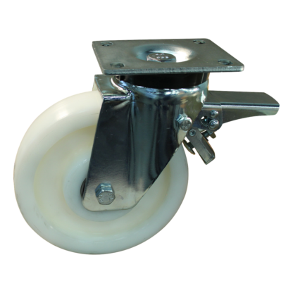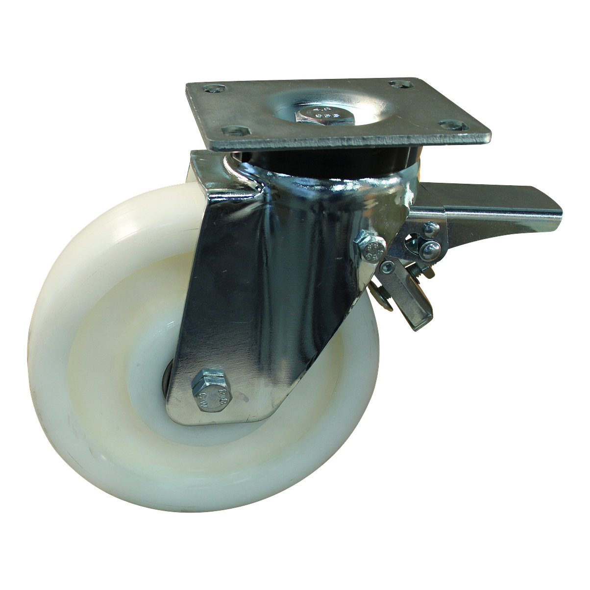 Diese Lenkrolle hat eine Gabel aus Stahl. Die Bremse ist vom Typ: Totalfeststeller, Vorlauf. Dies kann mit Befestigingsart „Platte“ befestigt werden. Die Bauhöhe beträgt 245 mm. Das Material der Felge ist Polyamid (weiß ist die Farbe) und der Lauffläche Polyamid (Farbe weiß). Das Rad hat einen Durchmesser von 200 mm und eine Breite von 50 mm. Das Rad hat eine Tragfähigkeit von 800 kilo. Das Rad hat ein Kugellager als Lagerung. Dieses Produkt ist in unserem Shop in folgenden Kategorien erhältlich: Lenkrollen 800 kg, Schwerlastrollen, Lenkrollen 200 mm, Transportrollen, Nylon Rollen, Lenkrollen mit Bremse, Nylon Rollen mit Lager, Schwerlastlenkrollen, Lenkrollen.