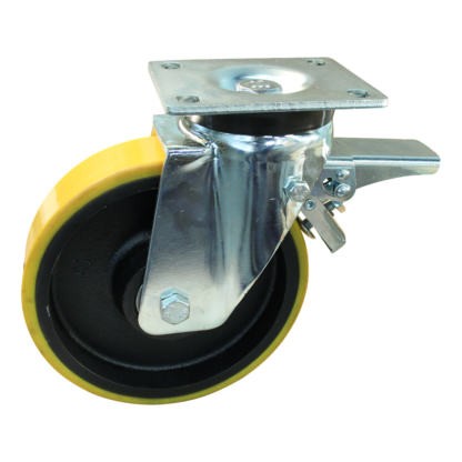 Lenkrolle Stahl, 200mm Durchmesser, PU Lauffläche, Kugellager, Totalfeststeller, Vorlauf