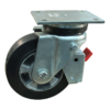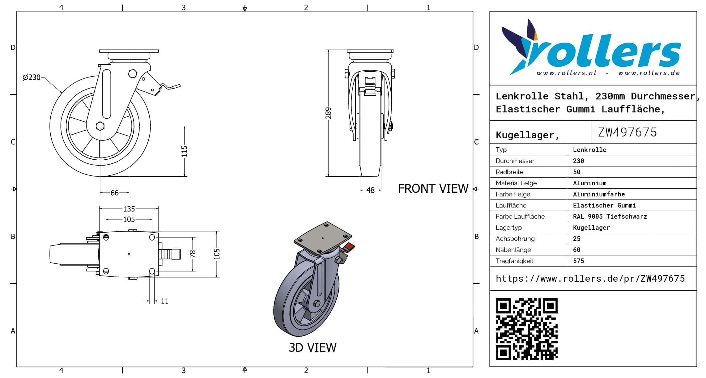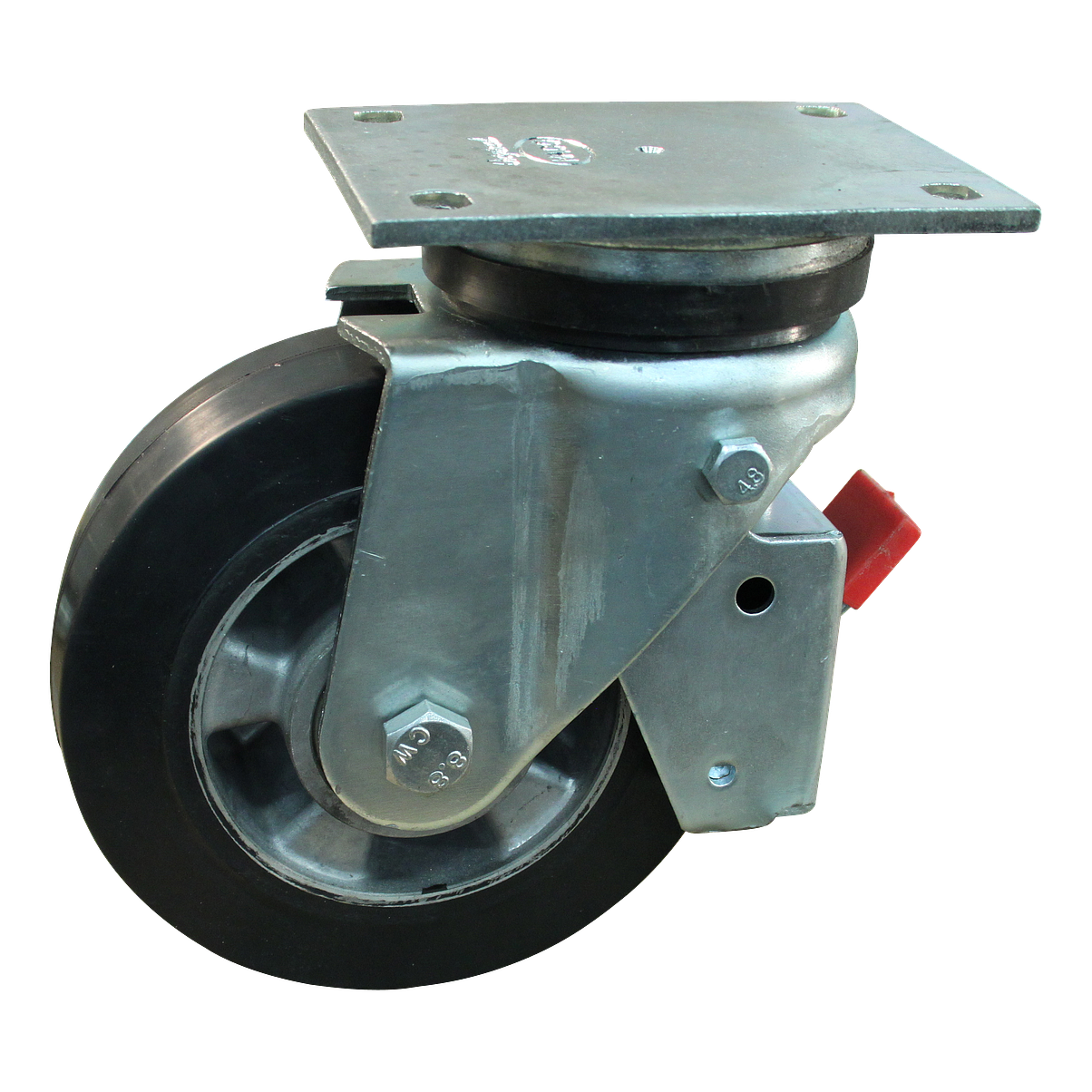 Dies ist eine Lenkrolle aus Stahl. Die Bremse ist vom Typ: Radbremse. Dies kann mit Befestigingsart „Platte“ befestigt werden. Die Bauhöhe beträgt 261 mm. Die Felge besteht aus Aluminium und die Lauffläche aus Elastischer Gummi (RAL 9005 Tiefschwarz ist die Farbe). Das Rad hat einen Durchmesser von 230 mm und eine Breite von 50 mm. Die Nabenlänge beträgt 60 mm und die Achsbohrung hat einen Durchmesser von 25 mm. Die Tragfähigkeit beträgt 575 kilogram. Das Rad hat ein Kugellager als Lagerung. Dieses Produkt finden Sie in unseren Kategorien: Gummiräder, Schwerlastlenkrollen mit Axiallager, Lenkrollen 500 kg, Schwerlastrollen, Lenkrollen 230 mm, Gummi Lenkrollen, Transportrollen, Lenkrollen mit Bremse, Schwerlastlenkrollen, Lenkrollen.