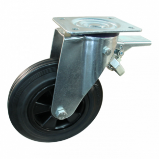 Diese Lenkrolle hat eine Gabel aus Stahl. Dies kann mit Befestigingsart „Platte“ befestigt werden. Die Rolle hat eine Bauhöhe von 290 millimeter. Die Felge besteht aus PP (Farbe RAL 9005 Tiefschwarz) und die Lauffläche aus Gummi (Farbe RAL 9005 Tiefschwarz). Das Rad hat einen Durchmesser von 250 millimeter und eine Breite von 60 millimeter. Die Nabenlänge beträgt 60 millimeter mit einem Achsloch von 20 millimeter. Die Rolle hat eine Tragfähigkeit von 250 kilogram. Der Lagertyp: Rollenlager. Marke: Novio.