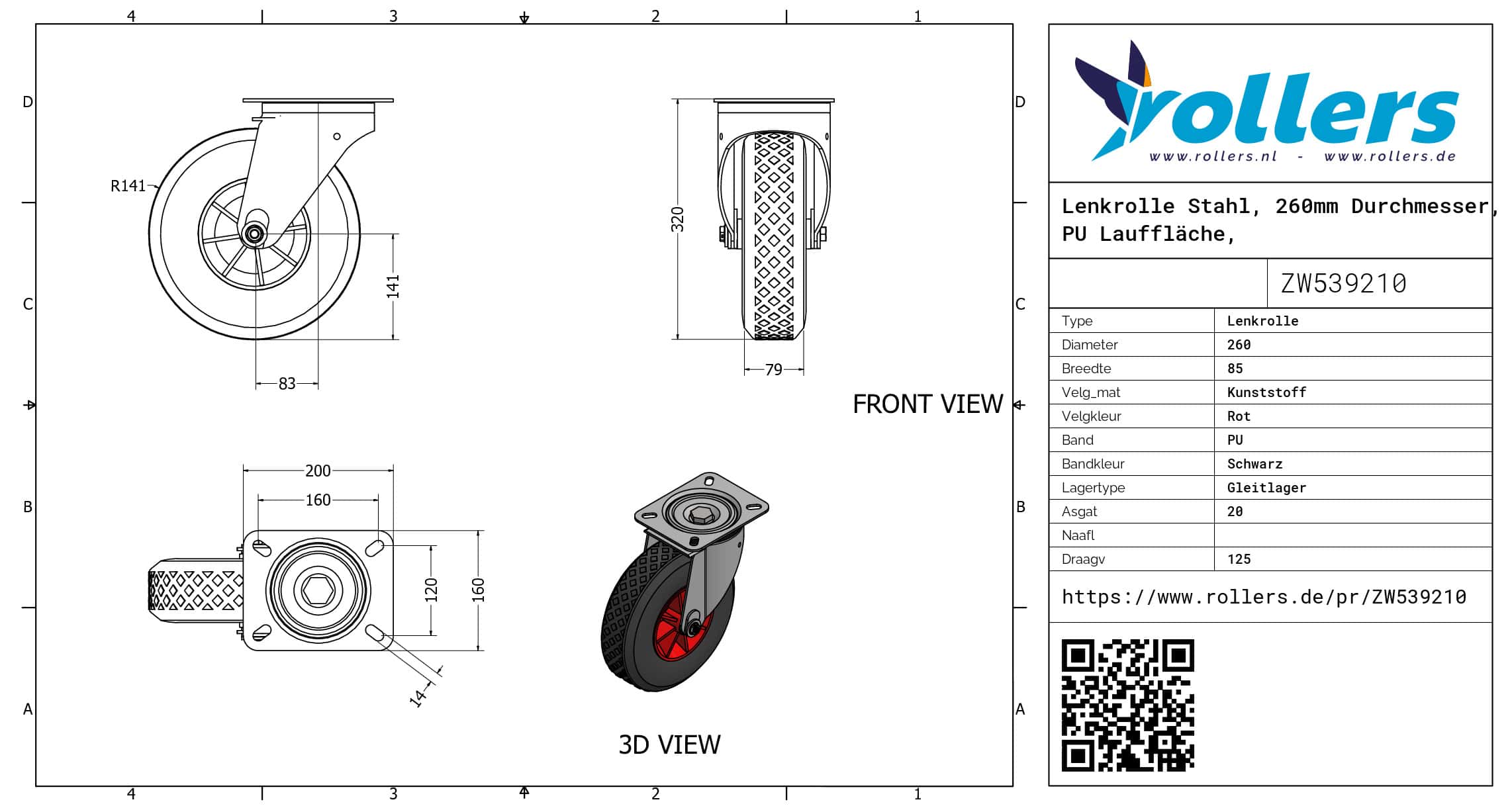 Diese Lenkrolle hat eine Gabel aus Stahl. Die Lenkrolle hat die folgende Befestigungsart: Platte. Die Bauhöhe ist 305 millimeter. Die Felge besteht aus Kunststoff (rot ist die Farbe) und die Lauffläche aus PU (schwarz ist die Farbe). Das Rad hat einen Durchmesser von 260 millimeter und eine Breite von 85 millimeter. Die Tragfähigkeit beträgt 125 kg. Der Lagertyp: Gleitlager. Dieses Produkt ist in unserem Shop in folgenden Kategorien erhältlich: PU Rollen, Lenkrollen 260 mm, Polyurethan Rollen, Lenkrollen 100 kg, Transportrollen, Lenkrollen ohne Bremse, Lenkrollen.
