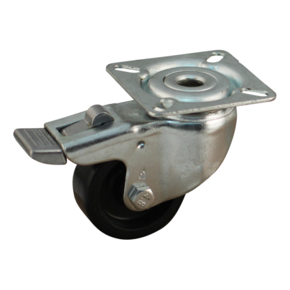 Lenkrolle Stahl, 50mm Durchmesser, PP Lauffläche, Gleitlager, Totalfeststeller, Nachlauf