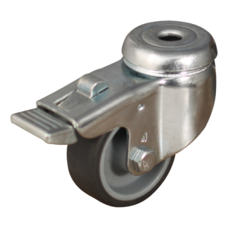 Dies ist eine Lenkrolle aus Stahl. Die Bremse ist vom Typ: Totalfeststeller, Nachlauf. Die Lenkrolle hat die folgende Befestigungsart: Bolzenloch. Die Bauhöhe beträgt 70.5 millimeter. Die Felge besteht aus PP (RAL 7001 Silbergrau) und die Lauffläche aus TPE (RAL 7015 Schiefergrau). Das Rad hat einen Durchmesser von 50 millimeter und eine Breite von 20 millimeter. Die Tragfähigkeit beträgt 40 kilogram. Der Lagertyp: Gleitlager. Rollers.de hat dieses Produkt in die folgenden Kategorien eingeteilt: Kleine Lenkrollen mit Feststeller, Kleine Lenkrollen, Lenkrollen 30 kg, Lenkrollen 50 mm, Lenkrollen mit Bremse, Lenkrollen. Marke: Novio.