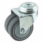 Dies ist eine Lenkrolle mit einem Gabel aus Stahl. Die Bremse ist vom Typ: Totalfeststeller, Nachlauf. Die Rolle hat die folgende Befestigungsart: Bolzenloch. Die Rolle hat eine Bauhöhe von 99 mm. Die Felge besteht aus PP (Farbe RAL 7001 Silbergrau) und die Lauffläche aus TPE (RAL 7015 Schiefergrau). Das Rad hat einen Durchmesser von 75 mm und eine Breite von 25 mm. Die Tragfähigkeit beträgt 90 kilogram. Der Lagertyp: Kugellager. Marke: Novio.
