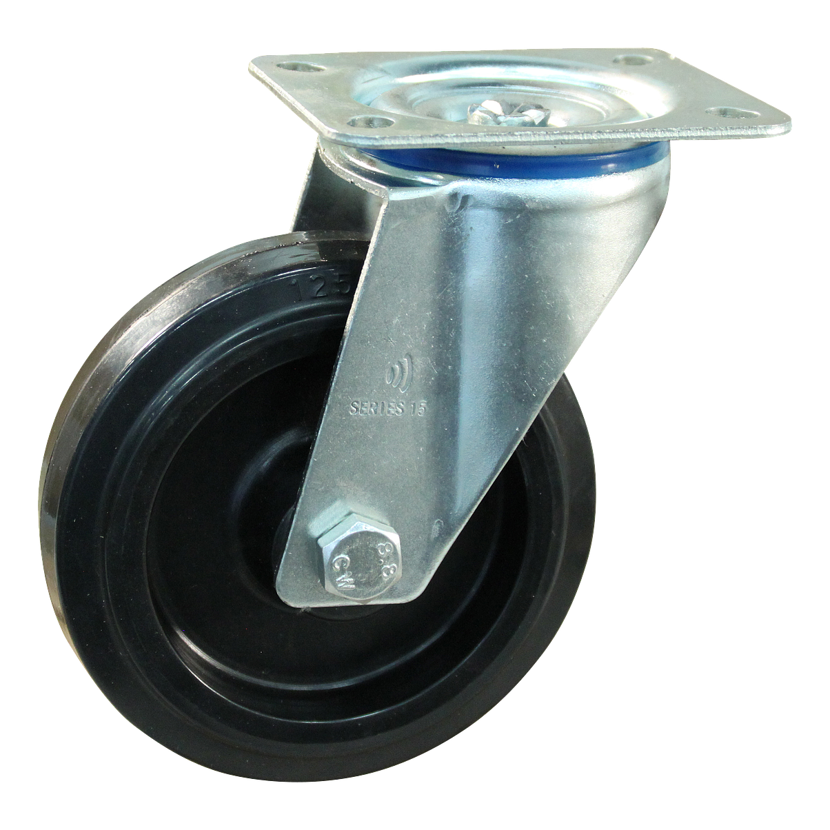 Lenkrolle Stahl, 80mm Durchmesser, Elastischer Gummi Lauffläche, Rollenlager