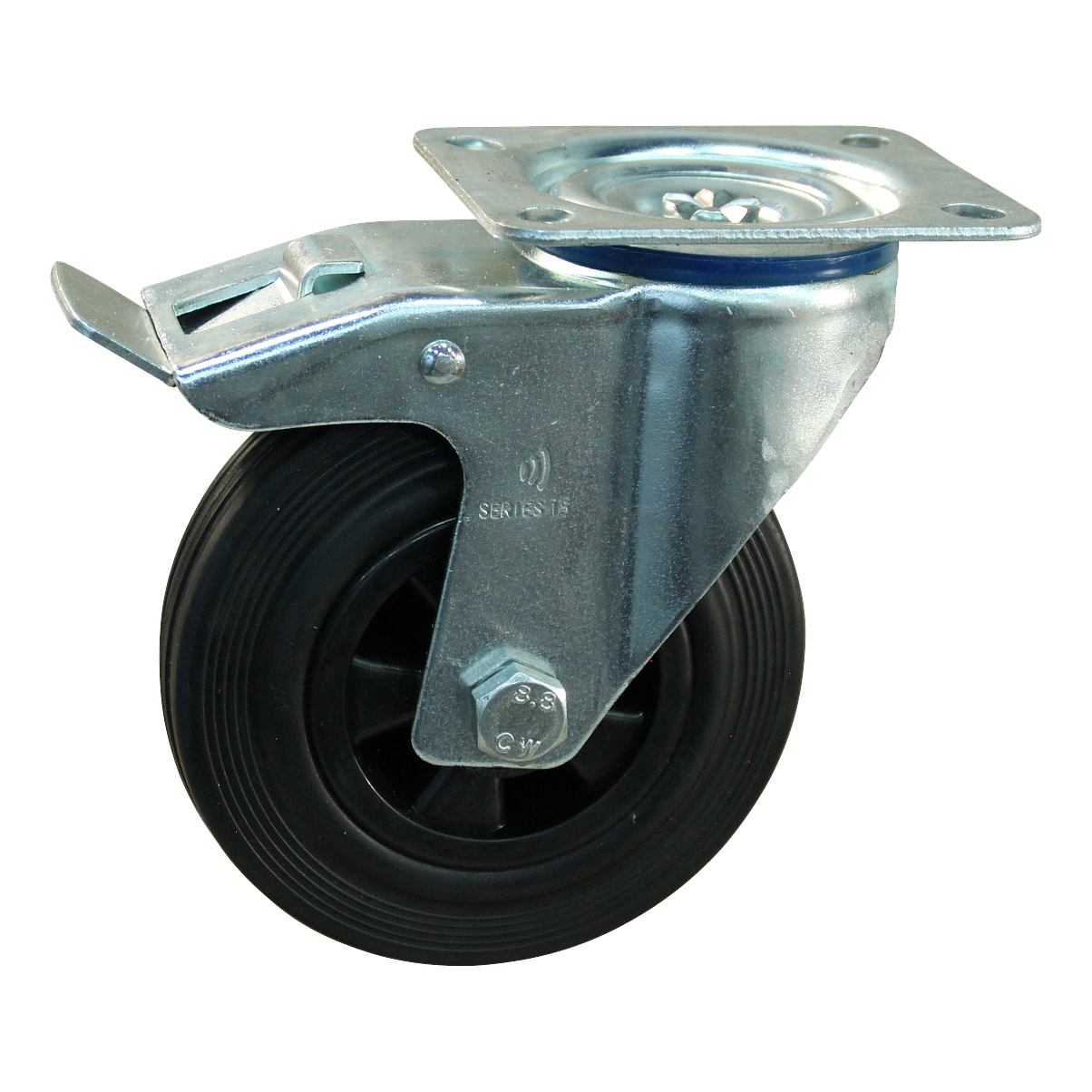 Diese Lenkrolle hat eine Gabel aus Stahl. Diese Rolle hat eine Totalfeststeller, Nachlauf. Dies kann mit Befestigingsart „Platte“ befestigt werden. Die Bauhöhe beträgt 108 millimeter. Das Material der Felge ist PP (RAL 9005 Tiefschwarz) und der Lauffläche Gummi (RAL 9005 Tiefschwarz). Das Rad hat einen Durchmesser von 80 millimeter und eine Breite von 25 millimeter. Die Tragfähigkeit beträgt 50 kilo. Der Lagertyp: Rollenlager. Dieses Produkt finden Sie in unseren Kategorien: Gummiräder, Kleine Lenkrollen mit Feststeller, Kleine Lenkrollen, Lenkrollen 50 kg, Lenkrollen 80 mm, Gummi Lenkrollen, Transportrollen, Lenkrollen mit Bremse, Lenkrollen.