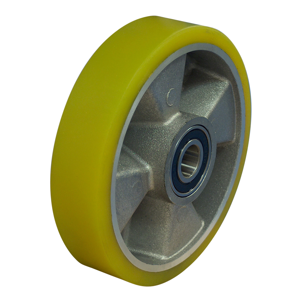 Dies ist ein loses Rad aus Aluminium. Die Felge besteht aus Aluminium und die Lauffläche aus PU (RAL 1005 Honiggelb ist die Farbe). Das Rad hat einen Durchmesser von 100 mm und eine Breite von 30 mm. Die Nabenlänge beträgt 40 mm und die Achsbohrung hat einen Durchmesser von 15 mm. Das Rad hat eine Tragfähigkeit von 200 kg. Der Lagertyp: Kugellager. Dieses Produkt ist in unserem Shop in folgenden Kategorien erhältlich: Räder mit Lager, Müllcontainer Rollen, Räder 100 mm, Räder 200 kg, PU Rollen, Polyurethan Rollen, Transportrollen, Räder.