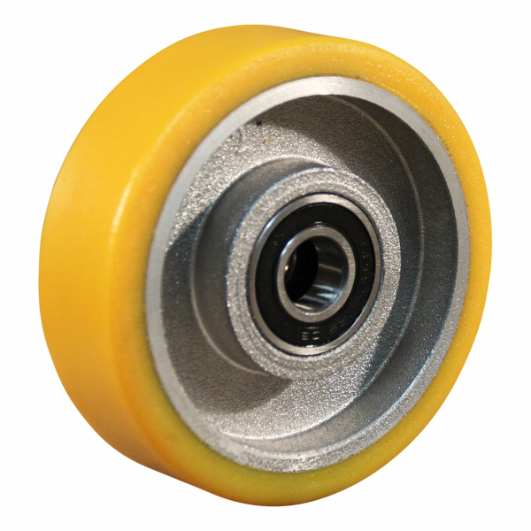 Dies ist ein loses Rad aus Aluminium. Die Felge besteht aus Aluminium und die Lauffläche aus PU (Farbe RAL 1005 Honiggelb). Das Rad hat einen Durchmesser von 100 millimeter und eine Breite von 40 millimeter. Die Nabenlänge beträgt 40 millimeter und die Achsbohrung hat einen Durchmesser von 15 millimeter. Die Tragfähigkeit beträgt 200 kg. Der Lagertyp: Kugellager.