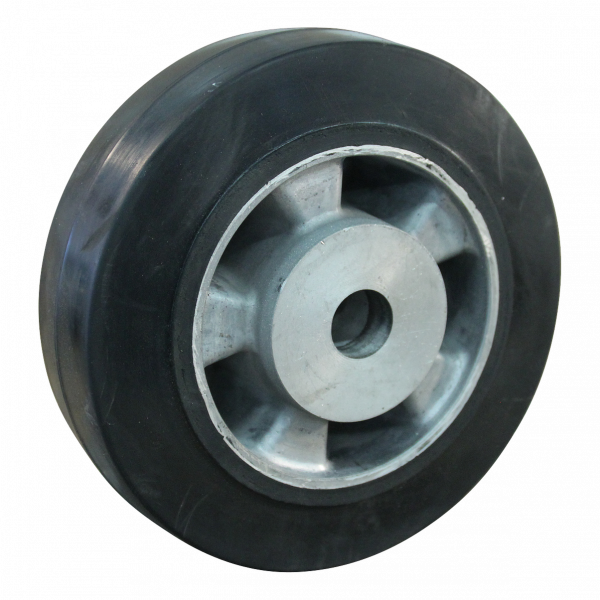 Rad Aluminium, 125mm Durchmesser, Elastischer Gummi Lauffläche, Gleitlager