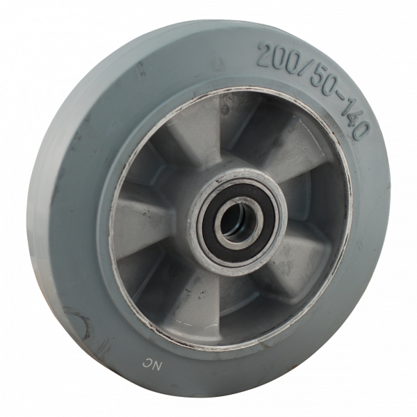 Dies ist ein loses Rad aus Aluminium. Das Material der Felge ist Aluminium und der Lauffläche Elastischer Gummi (Farbe Grau). Das Rad hat einen Durchmesser von 200 millimeter und eine Breite von 50 millimeter. Die Nabenlänge beträgt 60 millimeter mit einem Achsloch von 20 millimeter. Das Rad hat eine Tragfähigkeit von 550 kilogram. Der Lagertyp: Kugellager. Dieses Produkt finden Sie in unseren Kategorien: Räder mit Lager, Gummiräder, Müllcontainer Rollen, Räder 500 kg, Räder 200 mm, Schwerlastrollen, Transportrollen, Räder.