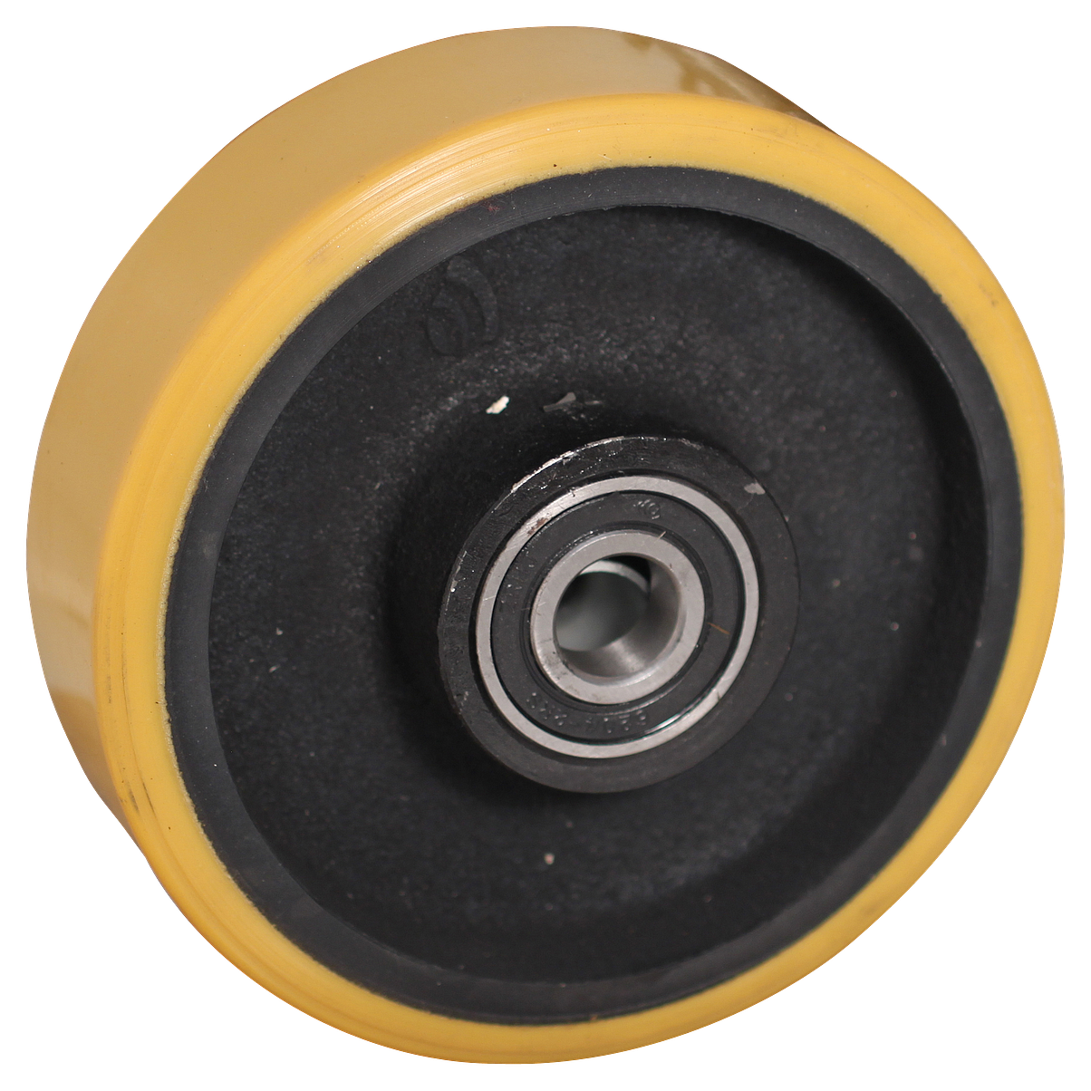Dies ist ein loses Rad aus Gusseisen. Die Felge besteht aus Gusseisen (Farbe RAL 9005 Tiefschwarz) und die Lauffläche aus PU (RAL 1005 Honiggelb). Das Rad hat einen Durchmesser von 160 millimeter und eine Breite von 50 millimeter. Die Nabenlänge beträgt 60 millimeter und die Achsbohrung hat einen Durchmesser von 25 millimeter. Die Tragfähigkeit beträgt 800 kilogram. Das Rad hat ein Kugellager als Lagerung. Dieses Produkt ist in unserem Shop in folgenden Kategorien erhältlich: Räder mit Lager, Räder 800 kg, Räder 160 mm, Schwerlastrollen, PU Rollen, Polyurethan Rollen, Transportrollen, Räder.