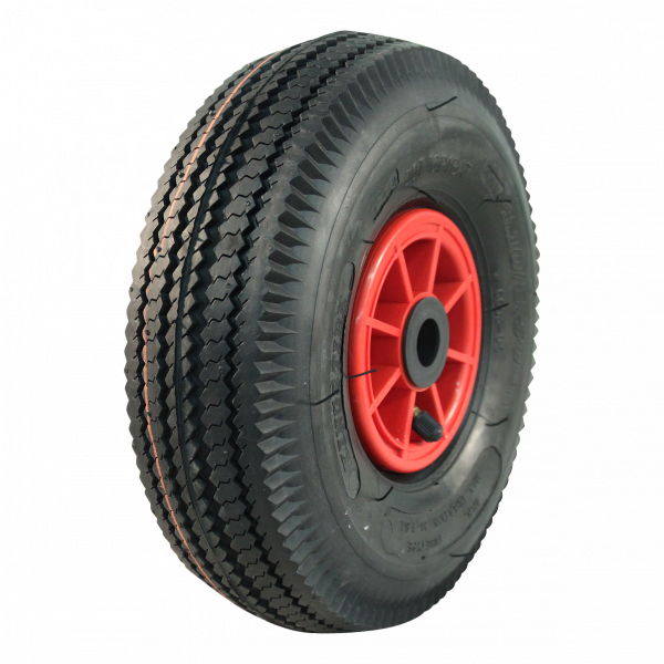 Dies ist ein loses Rad des Materials Kunststoff. Die Felge besteht aus Kunststoff (rot ist die Farbe) und die Lauffläche aus Luftreifen (schwarz). Das Rad hat einen Durchmesser von 270 millimeter und eine Breite von 90 millimeter. Die Nabenlänge beträgt 75 millimeter mit einem Achsloch von 20 millimeter. Die Tragfähigkeit beträgt 160 kg. Das Rad hat ein Rollenlager als Lagerung. Dieses Produkt finden Sie in unseren Kategorien: Räder mit Lager, Räder mit Luftreifen, Räder 150 kg, Transportrollen, Räder.