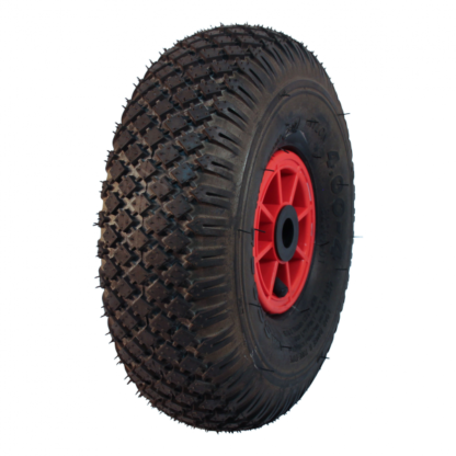 Dies ist ein loses Rad des Materials Kunststoff. Die Felge besteht aus Kunststoff (rot ist die Farbe) und die Lauffläche aus Luftreifen (Farbe schwarz). Das Rad hat einen Durchmesser von 300 millimeter und eine Breite von 100 millimeter. Die Nabenlänge beträgt 75 millimeter und die Achsbohrung hat einen Durchmesser von 25 millimeter. Die Rolle hat eine Tragfähigkeit von 160 kilogram. Der Lagertyp: Rollenlager.