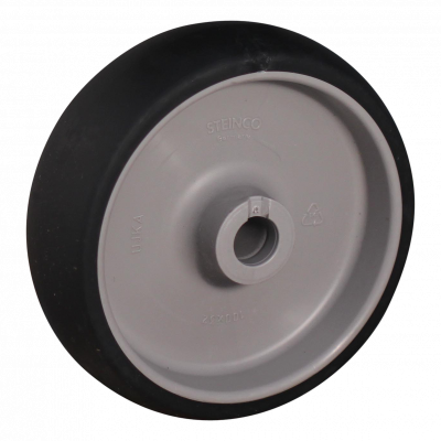 Dies ist ein loses Rad aus PP. Die Felge besteht aus PP (RAL 7004 Signalgrau ist die Farbe) und die Lauffläche aus TPE (RAL 7024 Graphitgrau ist die Farbe). Das Rad hat einen Durchmesser von 100 millimeter und eine Breite von 32 millimeter. Die Nabenlänge beträgt 36 millimeter mit einem Achsloch von 12 millimeter. Das Rad hat eine Tragfähigkeit von 80 kilo. Der Lagertyp: Gleitlager. Dieses Produkt finden Sie in unseren Kategorien: Kunststoffräder, Rostfreie Räder, Räder 50 kg, Räder 100 mm, Räder. Marke: Steinco.