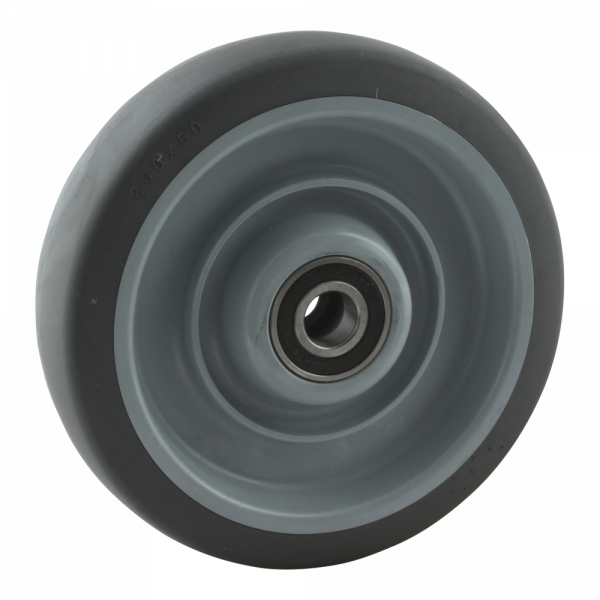Dies ist ein loses Rad aus PP. Die Felge besteht aus PP (RAL 7001 Silbergrau) und die Lauffläche aus TPE (Farbe RAL 7024 Graphitgrau). Das Rad hat einen Durchmesser von 200 millimeter und eine Breite von 46 millimeter. Die Nabenlänge beträgt 50 millimeter und die Achsbohrung hat einen Durchmesser von 12 millimeter. Das Rad hat eine Tragfähigkeit von 300 kilogram. Das Rad hat ein Kugellager als Lagerung.