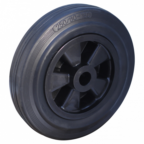 Dies ist ein loses Rad aus PP. Die Felge besteht aus PP (Farbe RAL 9005 Tiefschwarz) und die Lauffläche aus Gummi (Farbe RAL 9005 Tiefschwarz). Das Rad hat einen Durchmesser von 250 mm und eine Breite von 60 mm. Die Nabenlänge beträgt 60 mm und die Achsbohrung hat einen Durchmesser von 25 mm. Die Rad hat eine Tragfähigkeit von 250 kilogram. Das Rad hat ein Gleitlager als Lagerung. Rollers.de hat dieses Produkt in die folgenden Kategorien eingeteilt: Gummiräder, Rostfreie Räder, Räder 200 kg, Räder 250 mm, Transportrollen, Räder.