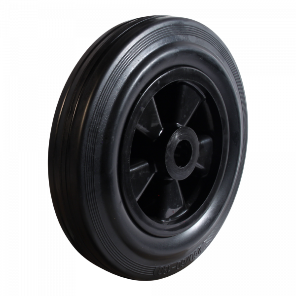 Dies ist ein loses Rad aus PP. Die Felge besteht aus PP (Farbe RAL 9005 Tiefschwarz) und die Lauffläche aus Gummi (Farbe RAL 9005 Tiefschwarz). Das Rad hat einen Durchmesser von 250 mm und eine Breite von 60 mm. Die Nabenlänge beträgt 60 mm und die Achsbohrung hat einen Durchmesser von 25 mm. Die Tragfähigkeit beträgt 250 kilo. Das Rad hat ein Rollenlager als Lagerung. Dieses Produkt finden Sie in unseren Kategorien: Räder mit Lager, Gummiräder, Räder 200 kg, Räder 250 mm, Transportrollen, Räder.