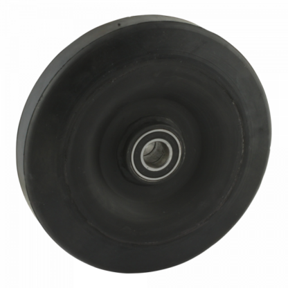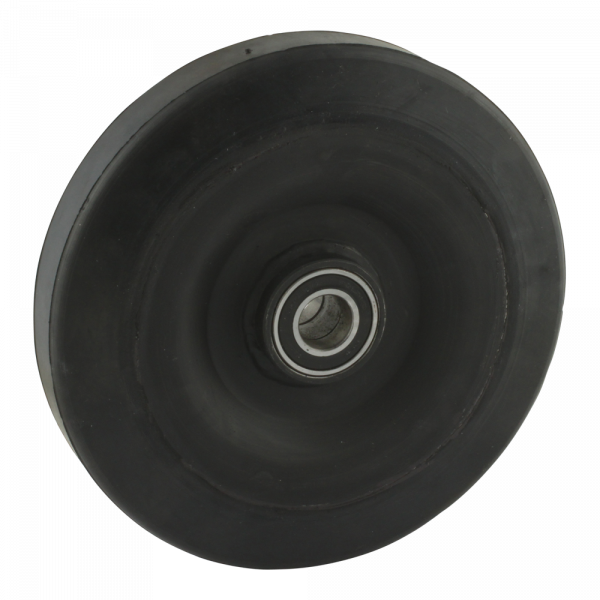 Dies ist ein loses Rad aus Stahl. Die Felge besteht aus Stahl (Farbe RAL 9005 Tiefschwarz) und die Lauffläche aus Elastischer Gummi (RAL 9005 Tiefschwarz). Das Rad hat einen Durchmesser von 300 mm und eine Breite von 80 mm. Die Nabenlänge beträgt 60 mm und die Achsbohrung hat einen Durchmesser von 30 mm. Die Tragfähigkeit beträgt 850 kilo. Das Rad hat ein Kugellager als Lagerung.