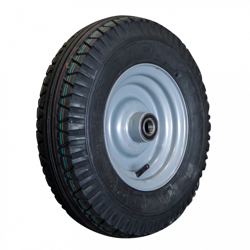Dies ist ein loses Rad aus Stahl. Das Material der Felge ist Stahl (Aluminiumfarbe ist die Farbe) und der Lauffläche Luftreifen (Farbe schwarz). Das Rad hat einen Durchmesser von 400 millimeter und eine Breite von 100 millimeter. Die Nabenlänge beträgt 100 millimeter mit einem Achsloch von 25 millimeter. Das Rad hat eine Tragfähigkeit von 710 kilogram. Das Rad hat ein Kugellager als Lagerung.