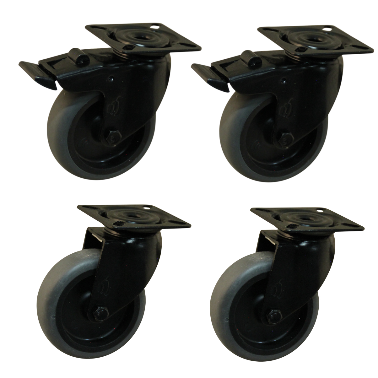 Dieser Rollensatz besteht aus 4 schwarzen Lenkrollen mit einer Stahlgabel, 2 mit Bremse und 2 ohne Bremse. Die Lenkrolle hat die folgende Befestigungsart: Platte. Die Bauhöhe beträgt 70.5 mm. Die Felge besteht aus PP (Farbe RAL 7001 Silbergrau) und die Lauffläche aus TPE (RAL 7015 Schiefergrau ist die Farbe). Das Rad hat einen Durchmesser von 50 mm und eine Breite von 20 mm. Die Tragfähigkeit beträgt 40 kilo. Der Lagertyp: Gleitlager. Dieses Produkt ist in unserem Shop in folgenden Kategorien erhältlich: Kleine Lenkrollen, Lenkrollen 30 kg, Schwarze Lenkrollen, Lenkrollen 50 mm, Lenkrollen ohne Bremse, Lenkrollen. Marke: Novio.