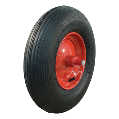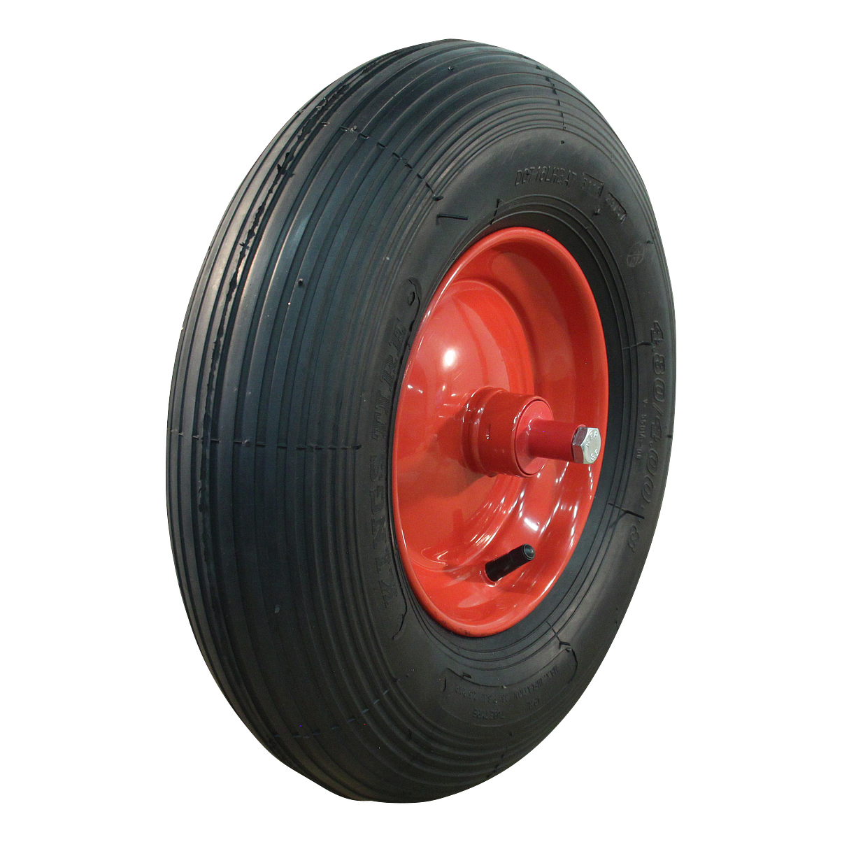 Schubkarrenrad inkl. Achse. Die Achse ist 130 mm lang und hat einen Durchmesser von 17 mm. Die M12 Bolzen, zur Befestigung des Rades samt Achse zwischen der Gabel der Schubkarre, sind im Lieferumfang enthalten. Das Material der Felge ist Stahl (rot Farbe) und der Lauffläche Luftreifen (Farbe schwarz). Das Rad hat einen Durchmesser von 400 mm und eine Breite von 100 mm. Die Nabenlänge beträgt 106 mm mit einem Achsloch von 17 mm. Die Tragfähigkeit beträgt 165 kilogram. Der Lagertyp: Kugellager. Dieses Produkt ist in unserem Shop in folgenden Kategorien erhältlich: Räder mit Lager, Räder mit Luftreifen, Schubkarrenrad mit Achse, Räder 150 kg, Räder 400 mm, Schubkarrenräder, Transportrollen, Räder.