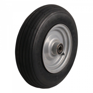 Dies ist ein loses Rad aus Stahl. Die Felge besteht aus Stahl (Farbe Aluminiumfarbe) und die Lauffläche aus Luftreifen (schwarz). Das Rad hat einen Durchmesser von 400 millimeter und eine Breite von 100 millimeter. Die Nabenlänge beträgt 90 millimeter mit einem Achsloch von 25 millimeter. Die Tragfähigkeit beträgt 220 kilogram. Das Rad hat ein Kugellager als Lagerung. Dieses Produkt finden Sie in unseren Kategorien: Räder mit Lager, Räder mit Luftreifen, Schubkarrenrad ohne Achse, Räder 200 kg, Räder 400 mm, Schubkarrenräder, Transportrollen, Räder.