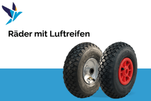 Unsere Räder mit Luftreifen haben Anwendungen wie Handwagen-, Schubkarren-, Go-Kart- oder Sackkarrenräder. Die Laufräder dieser Kategorie haben einen Durchmesser zwischen 200 mm / 2.00-4 und 400 mm / 4.80/4.00-8. Die Tragfähigkeit dieser Räder liegt zwischen 75 kg und 250 kg.